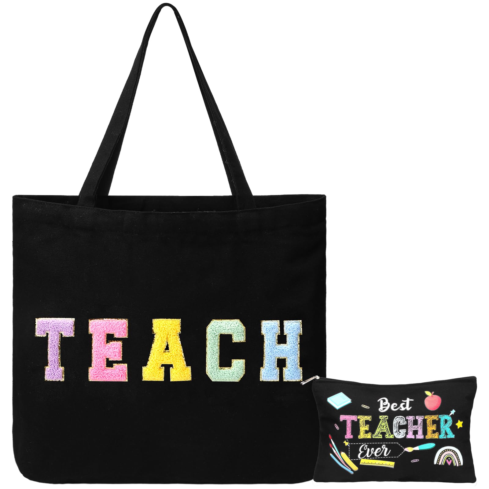 Description Features: You will receive 1 piece of teacher gift bag and 1 piece of canvas pouch. They are designed in nice combination for your convenient use, well organizing your items. The teachers appreciation gifts set have a delicate design and reliable quality, can accompany you for a long time. You can use them with confidence. Specifications: Material: canvas Color: multicolor Size: one size Package includes: 1 x Teacher gift bag 1 x Cosmetic bag Notes: Manual measurement, please allow slight errors on size. The color may exist a slight difference due to different screen displays. After receiving the package, if the product has wrinkles, it can be ironed before use. Words printed on our products are only for decorating, not as trademarks, and our trademark is .