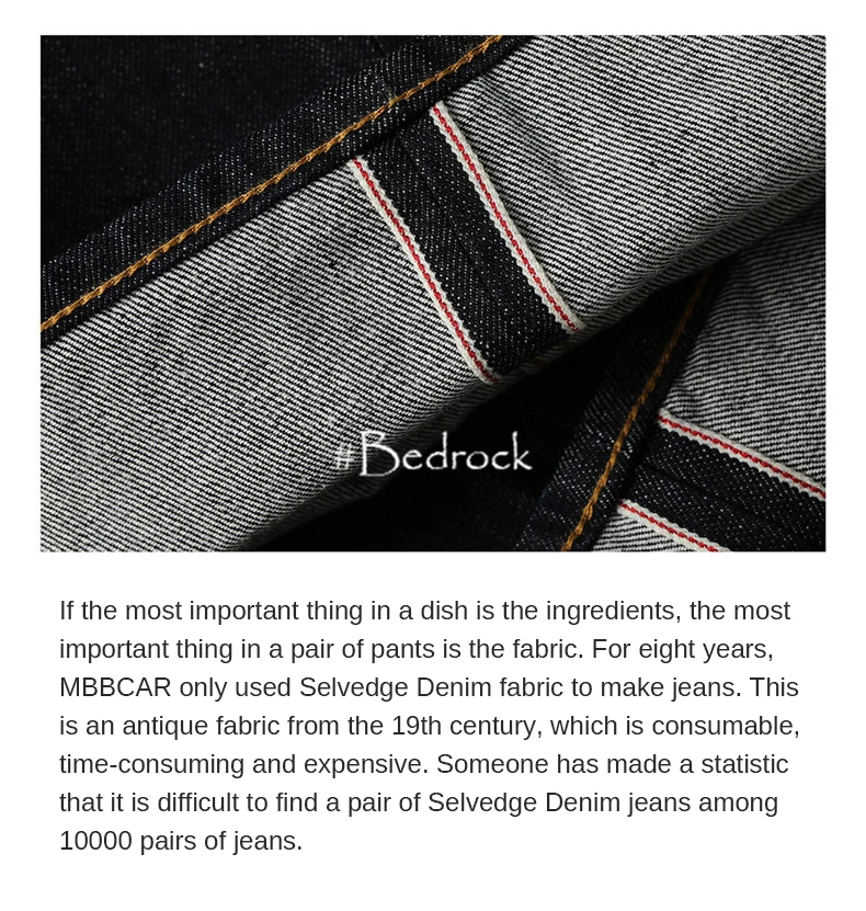 Fabric: 14 oz antique loom selvedge denim fabric (extra deep blue)