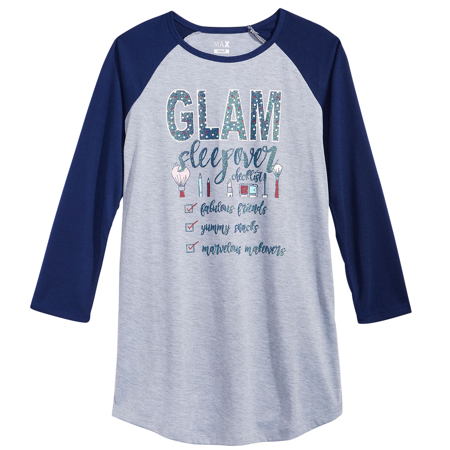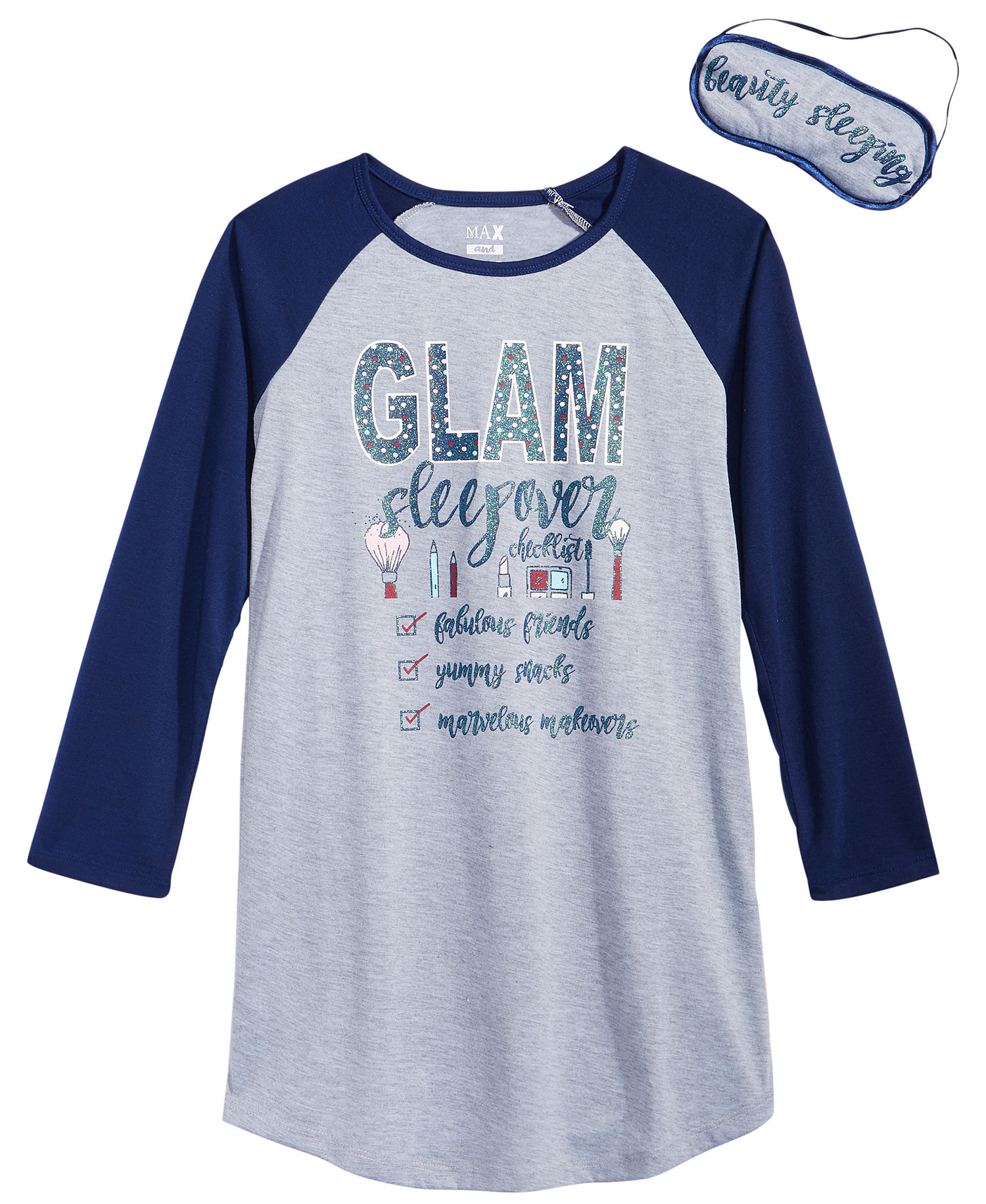 Max & Olivia Girls 2-Pc. Sleep Mask & Nightshirt Pajama (Small, Light Gray)