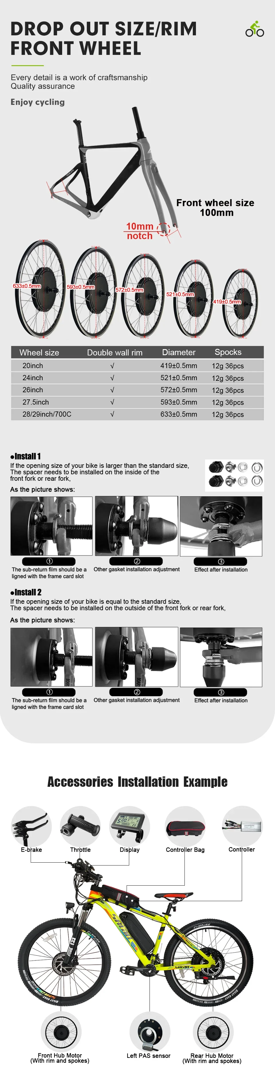 Noted:Conversion Kit not include Battery, tire, freewheel, disc brake.( If you need a Battery, tire, freewheel, disc brake, Please contact us for an additional fee )