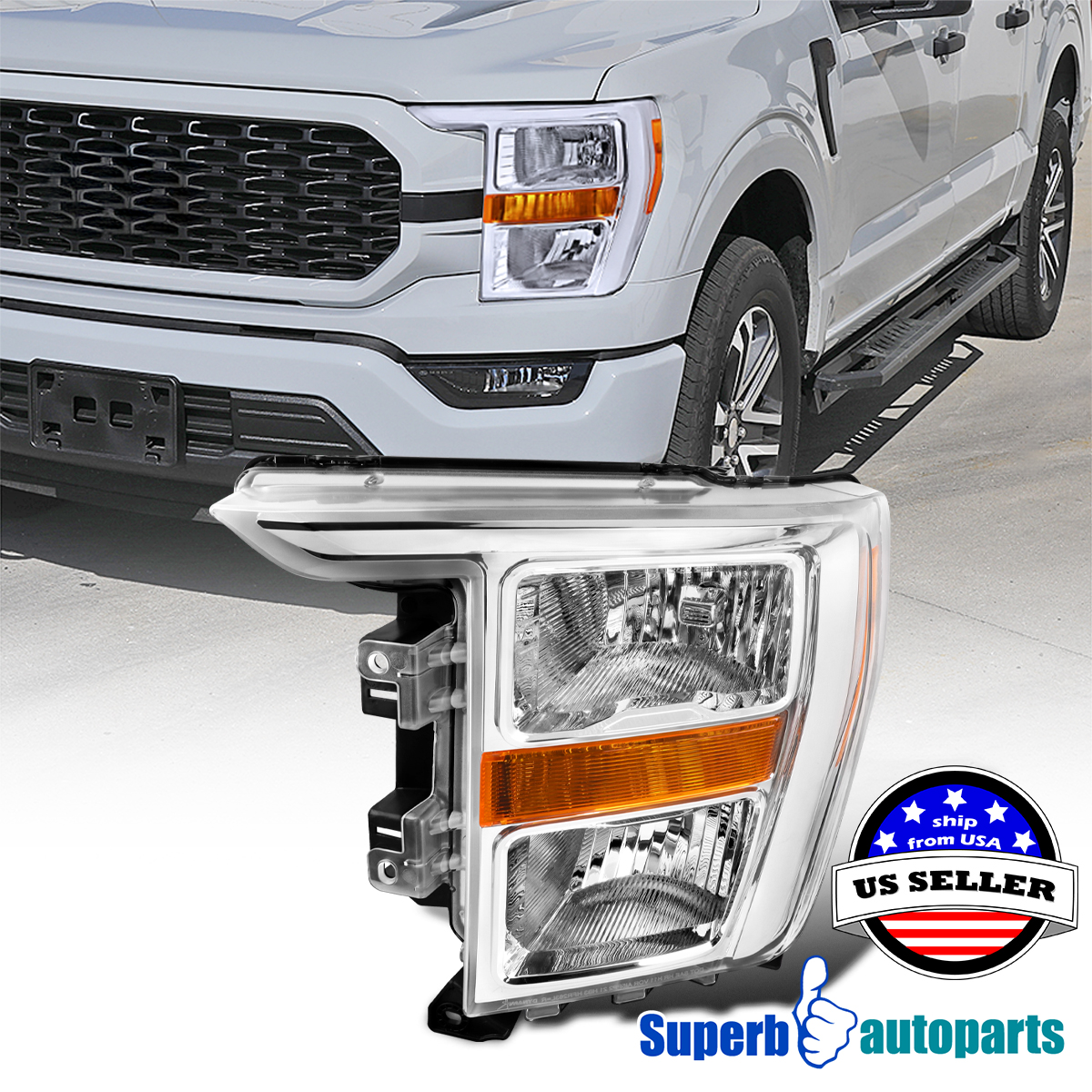 Comes with single left side of OE style chrome housing clear lens headlight.