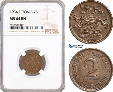AF887, Estonia, 2 Senti 1934, NGC MS64BN