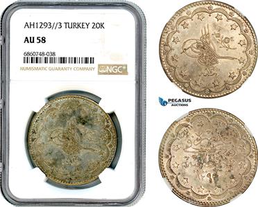 AI795, Turkey, Ottoman Empire, Abdülhamid II, 20 Kurush AH1293//3, Silver, NGC AU58