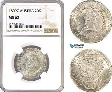 AG919, Austria, Franz II, 20 Kreuzer 1809 C, Prague Mint, Silver, KM# 2141, NGC MS62