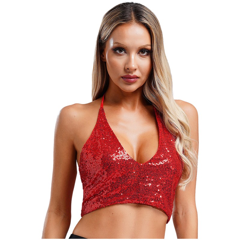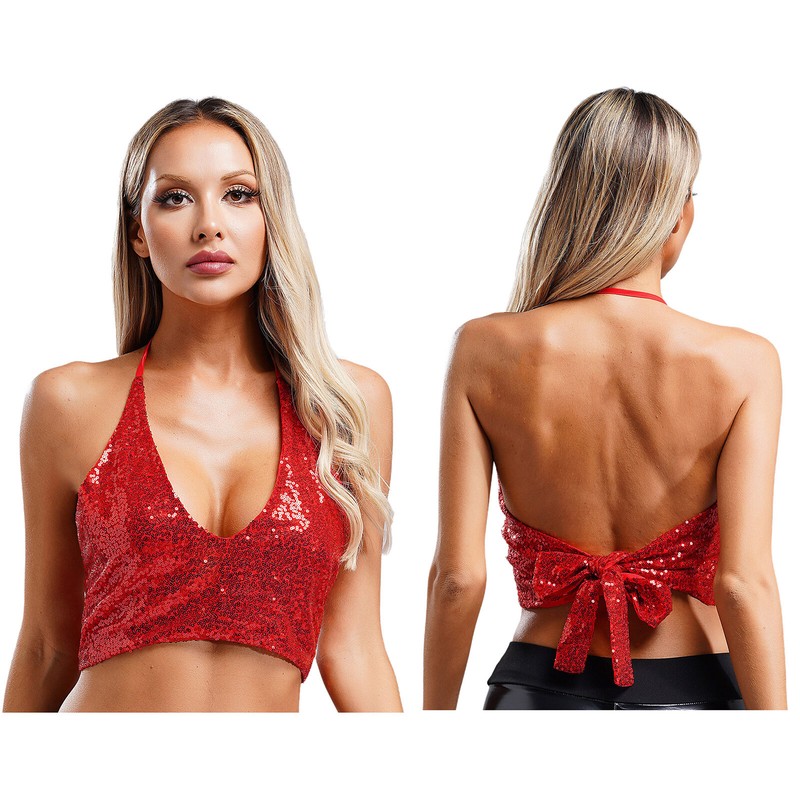 Women’s shiny vest is designed with halter neck, deep v neck, backless, lace-up at back and fully lining, making you superbly sexy.