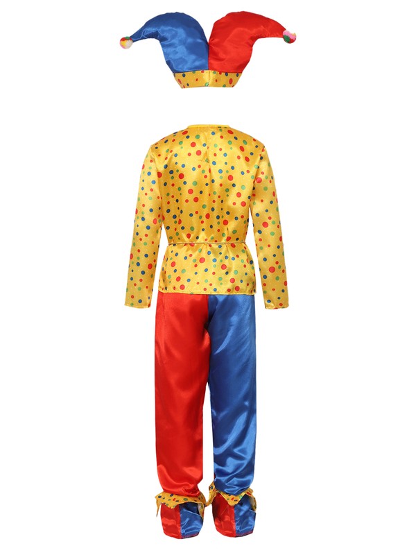 Set Include: 1Pc Kids Clown Top, 1Pc Kids Clown Pants, 1Pc Kids Clown Hat, 1Pc Kids Clown Shoes