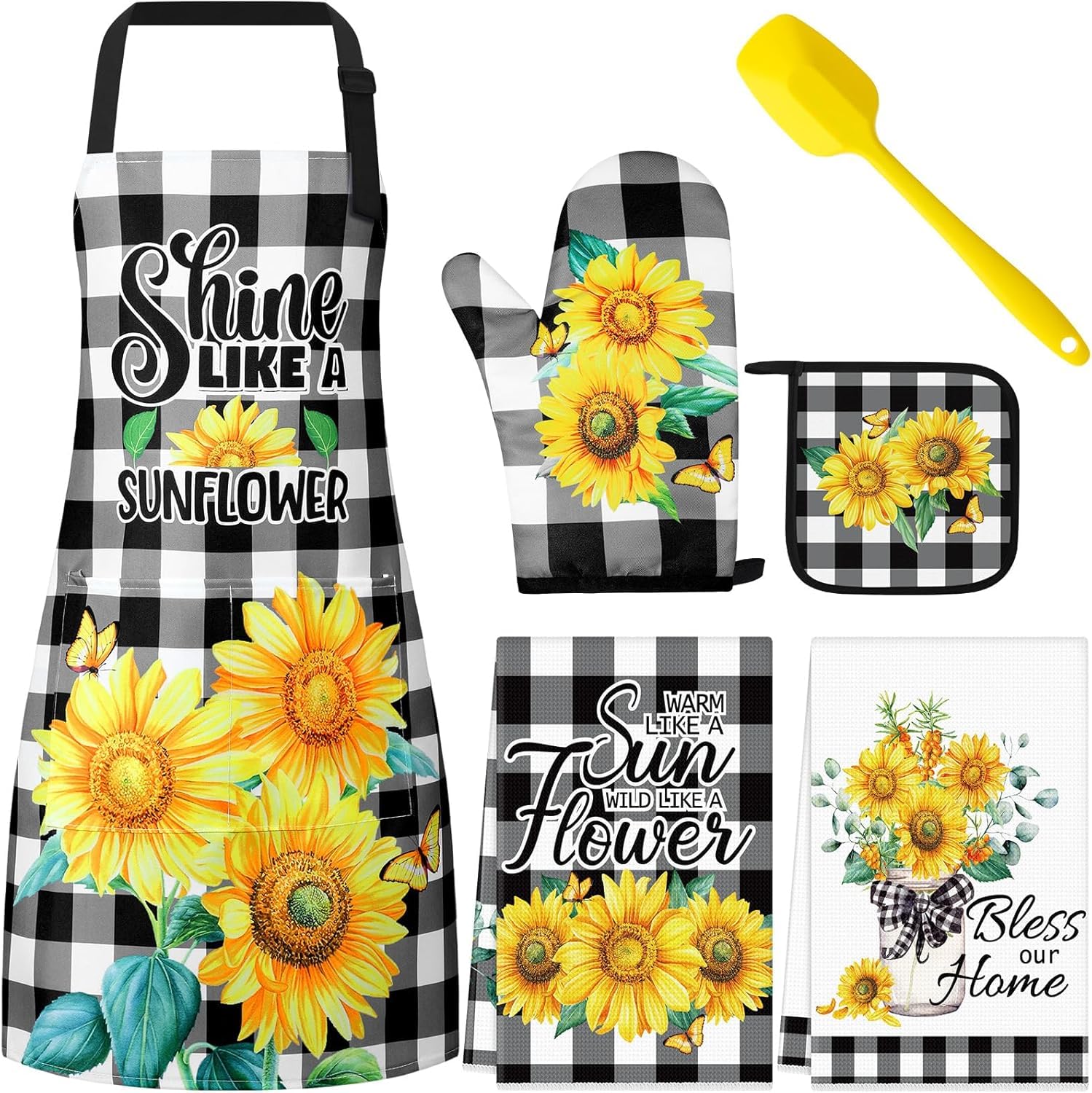 Features: The chef apron does a fantastic job protecting your clothes from kitchen splatters and stains, not just in cooking, but also in baking and even gardening. Suitable for outdoors, summer cookouts, parties, and more, this apron proves to be an essential add on to anyone who spends considerable time in the kitchen. Flaunt your distinctive with the various patterns available in this woman kitchen gift set. Not just functional, it also adds a splash of elegance and to your kitchen decor. Specifications: Apron material: polyester Towels material: microfiber waffle fabric Pot holder and oven mitt material: cotton Spatula material: silicone Apron size: about 23.6 x 27.6 inches Towels size: about 23.6 x 15.7 inches Pot holder size: about 6.7 x 6.7 inches Oven mitt size: about 10.6 x 7.1 inches Spatula size: about 8.1 inches in length Package includes: 1 x Apron 2 x Towels 1 x Pot holder 1 x Oven mitt, 1 x Spatula Notes: Manual measurement, please allow slight errors on size. The color may exist a slight difference due to different screen displays.