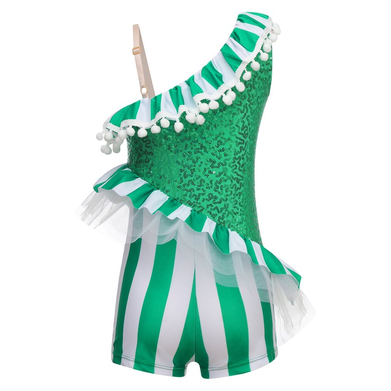 Stylish girls Christmas costume, asymmetric shoulder straps, sleeveless short jumpsuit.