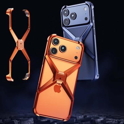 Metal Case for iPhone 17 Pro Max 17 Frameless Aluminum Alloy Hollow Borderless