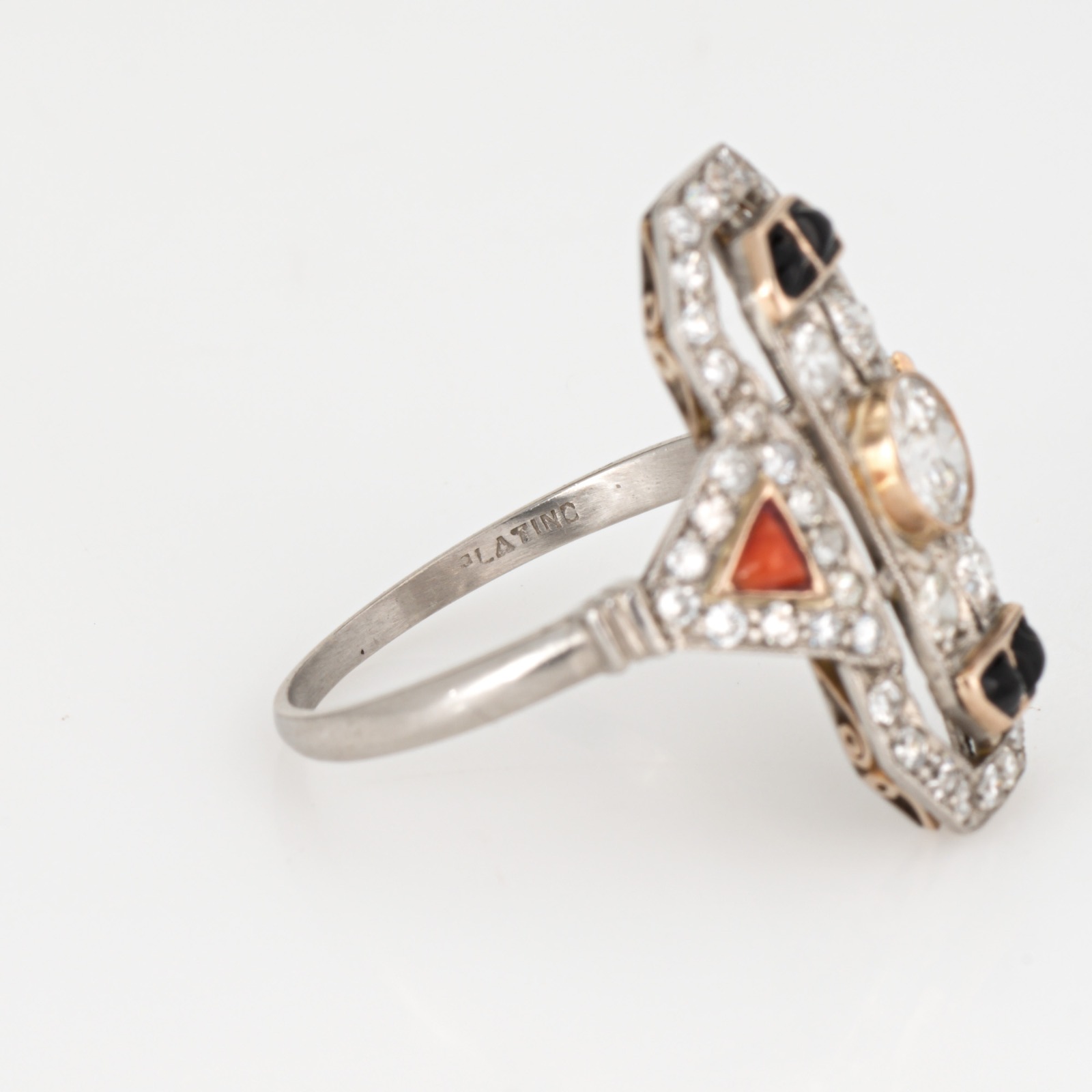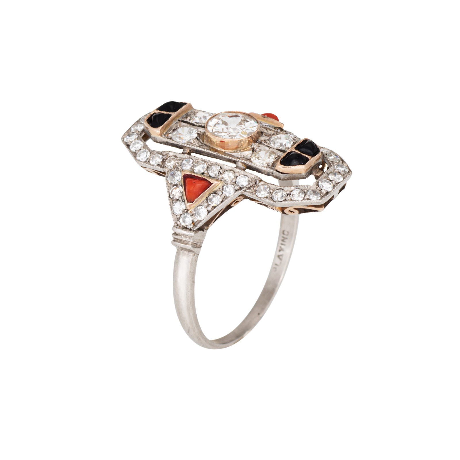 Vintage Art Deco Diamond Ring Coral Onyx Sz 9.75 Platinum Plaque Jewelry