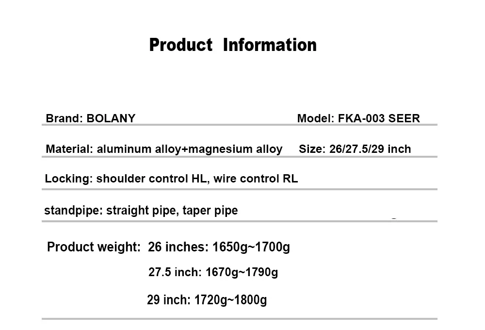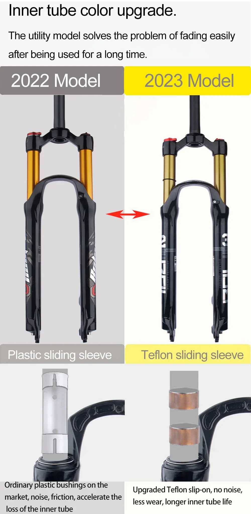 Material: magnesium alloy (fork leg)+aluminum alloy fork shoulder