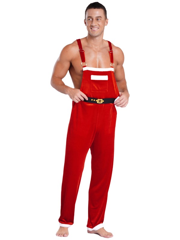 A Christmas Santa Claus costume jumpsuit for men, with classic style and colors, fits for Xmas parties.
