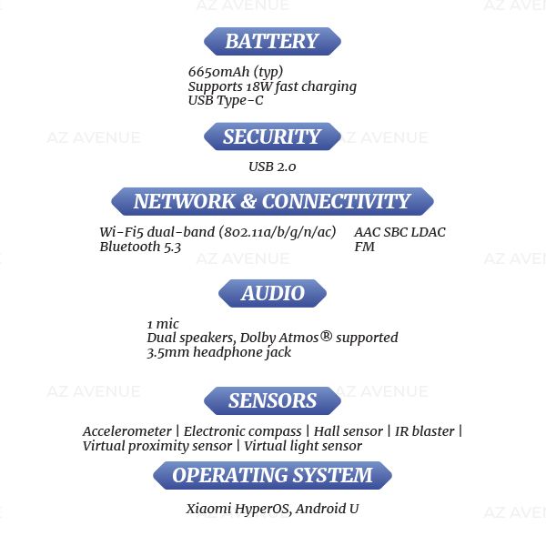- 6650mAh battery 🔋, up to 25.2 hours video 🎥, 163.8 hours music 🎵, 34.2 hours reading 📚, 18W fast charge ⚡.