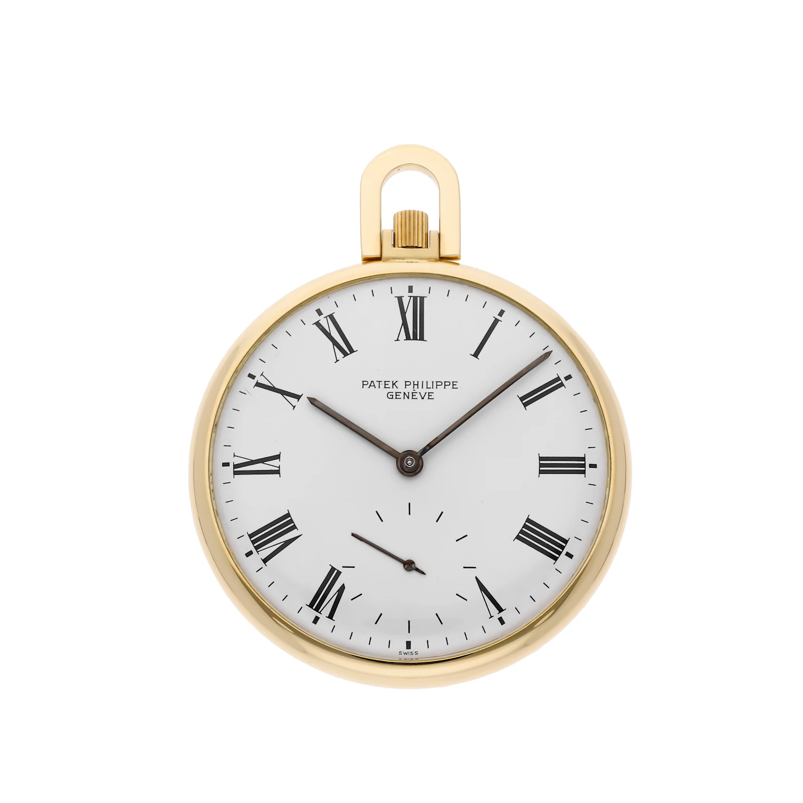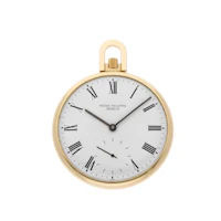 This 47mm 18k yellow gold Patek Philippe Open Face Pocket Watch (866) features a clean white dial. The manual wind movement displays hours, minutes, and seconds. Protected by a plexiglass crystal, this pre-owned watch comes without box or papers but includes The 1916 Company's 2-year warranty. A classic collector's piece from the Patek Philippe Pocket Watches collection.