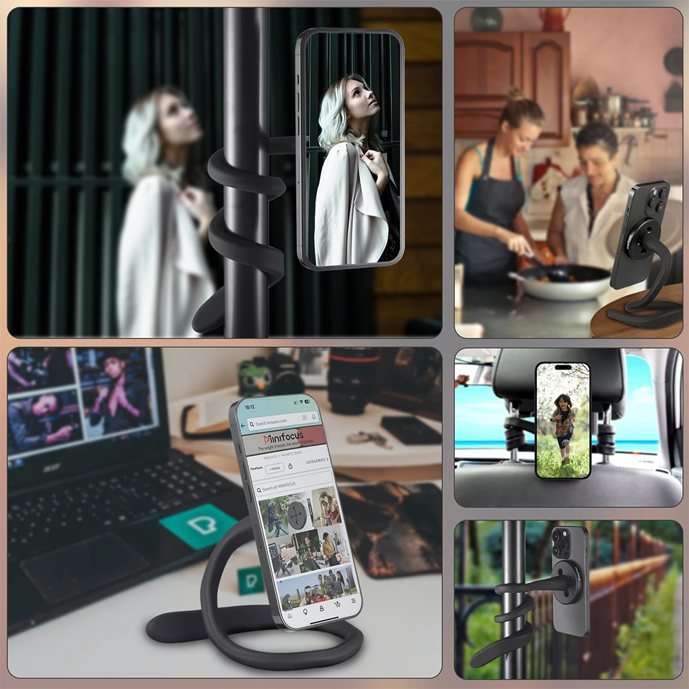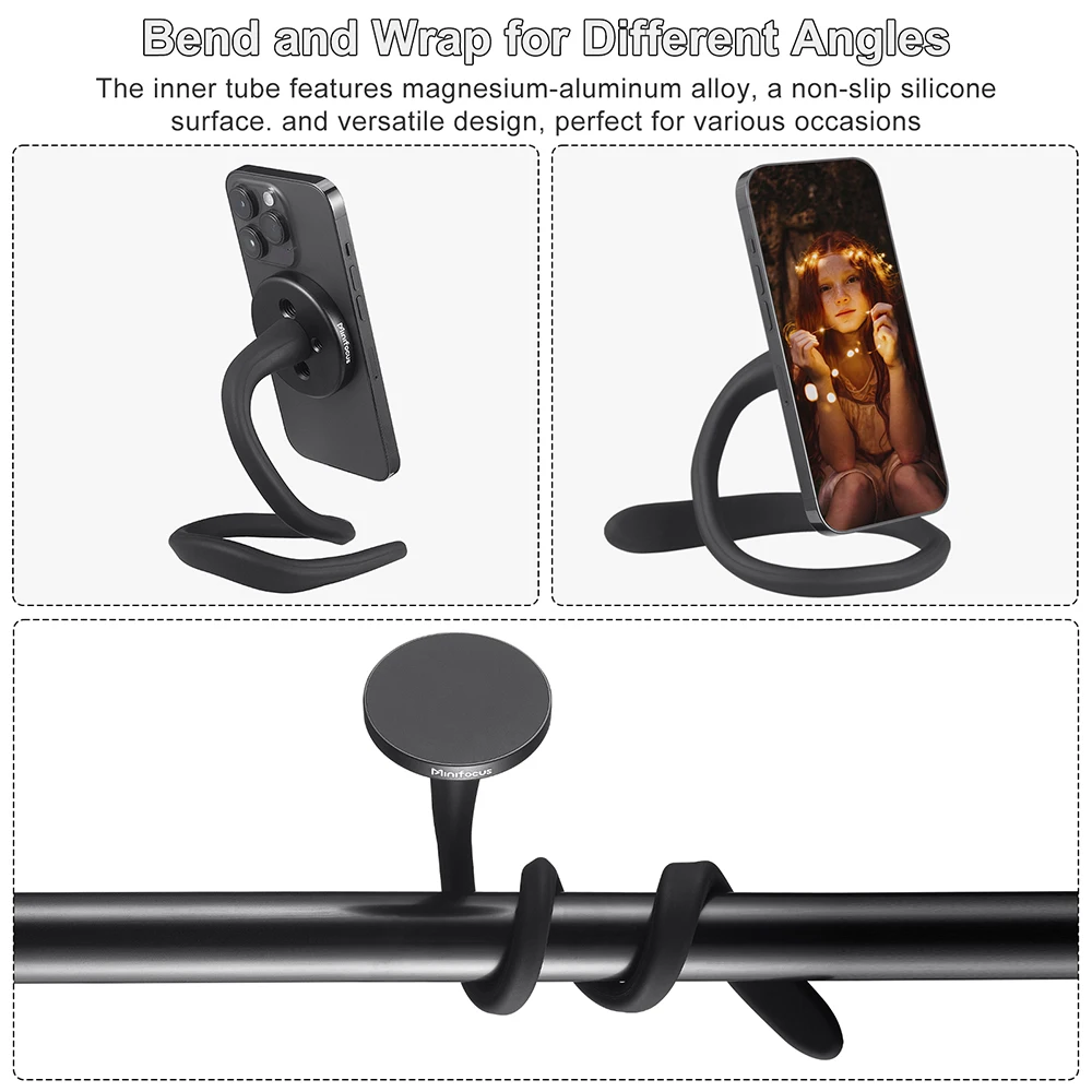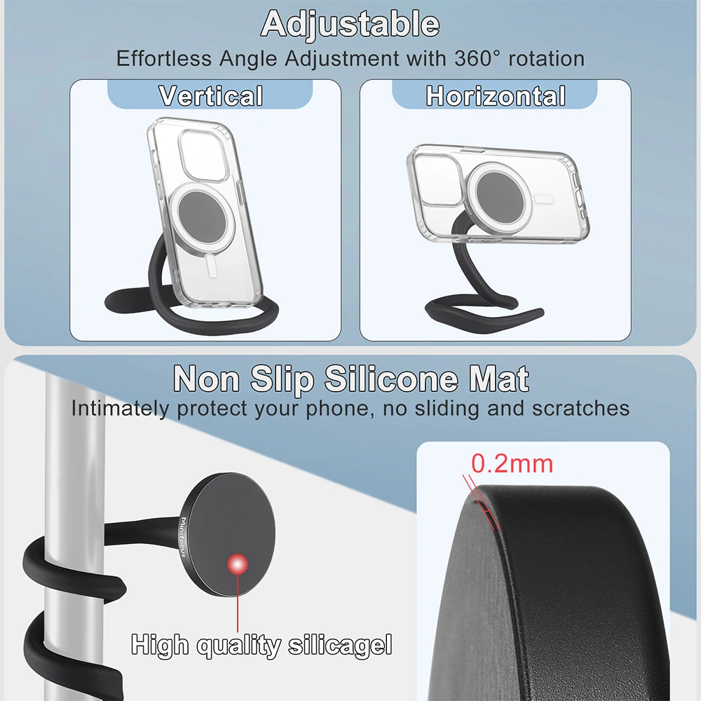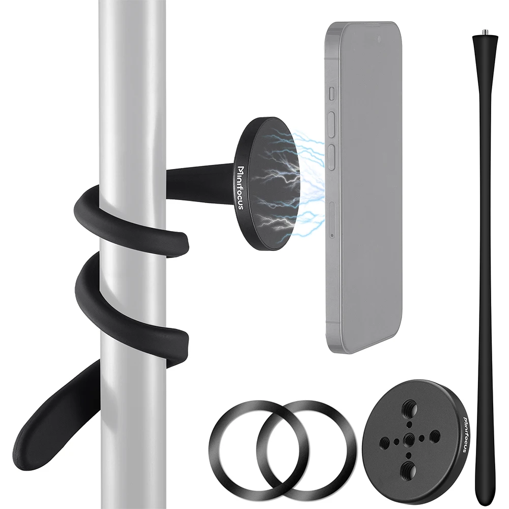 Compatibility: Silicone flexible bracket with 1/4" screw, can be used for any other accessories with a 1/4" thread. The magnetic adapter features 1/4"-20 thread holes on the reverse side, it can easily be attached to any other accessories with a 1/4" screw. The magnetic phone mount is fully compatible with iPhone's MagSafe sticker for 15/14/13/12 series. For other phone, please stick the metal ring included to the back of the case.