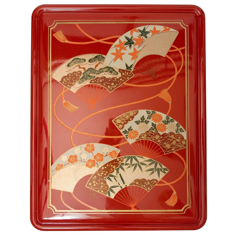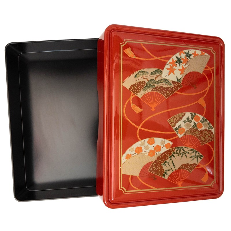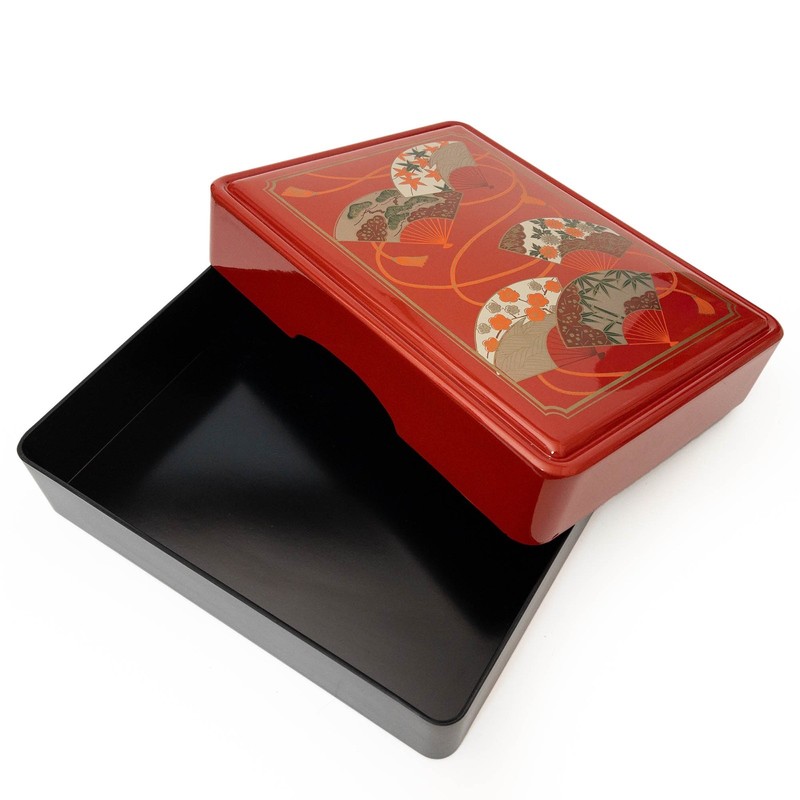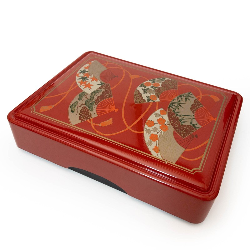 Red Lacquered Bunko Box in Golden Dance Fan Design