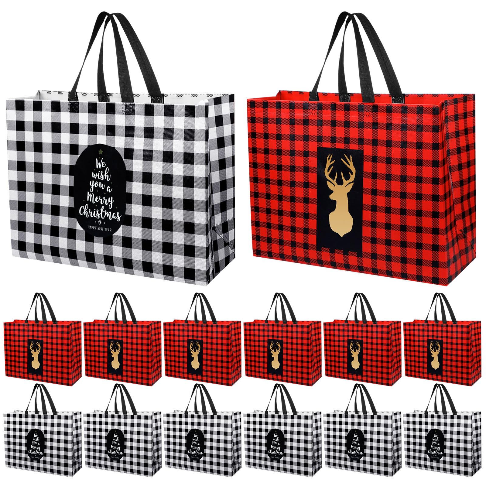 Description Features: Christmas totes for gifts are large enough to hold your cookies, treats, candy, toys, party favors and so on. Christmas shopping bags are sturdy and reusable, can also be served as gift bags, totes, sundries storage bags, meeting your various needs. Specifications: Material: non woven Color: as picture shown Size: about 16.9 x 12.6 x 6.8 inches/ 42.9 x 32 x 17.3 cm Package includes: 24 x Large Christmas tote bags with handles Notes: Manual measurement, please allow slight errors on size. The color may exist a slight difference due to different screen displays.