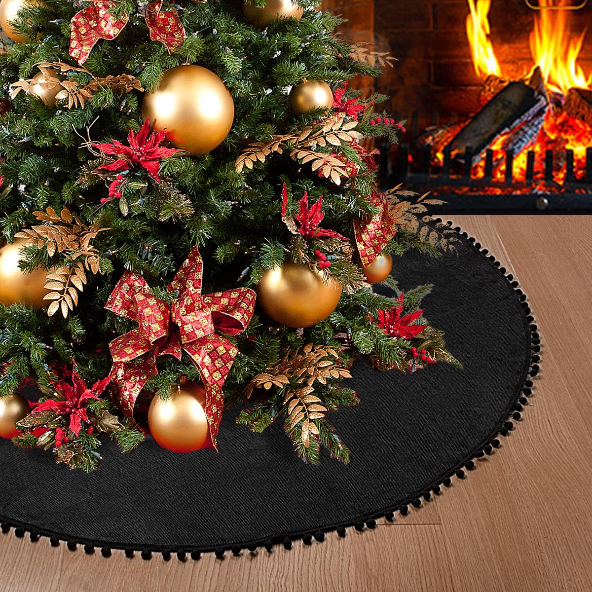 Packing list: 1 x black Christmas tree skirt Features: 1. Diameter: 48inch / 4 feet / 122cm 2. Material: 100% natural burlap 3. Color: black 4. Washing Method: Hand washing is recommended 5. Just place this skirt underneath your tree to add more festivity to your holiday decorations 6. Rustic and classic burlap tree skirt with black pom pom makes Christmas tree look fabulous 7. This kind of black tree mat will add more festivity to your tree and will be a great complement to your holiday decoration. 8. This jute tree skirt not only adds an added flare to your tree, but it is also perfect for placing presents and catching any tree shavings for you tree lovers 9. Choose a tree skirt that can accentuates your holiday , and don't let the traditional Christmas tree lose the beauty you spent hours decorating 10. Perfect for home, garden, fireplace, supermarket, schools, offices, it will brings unique and tranditional for your Christmas party decor