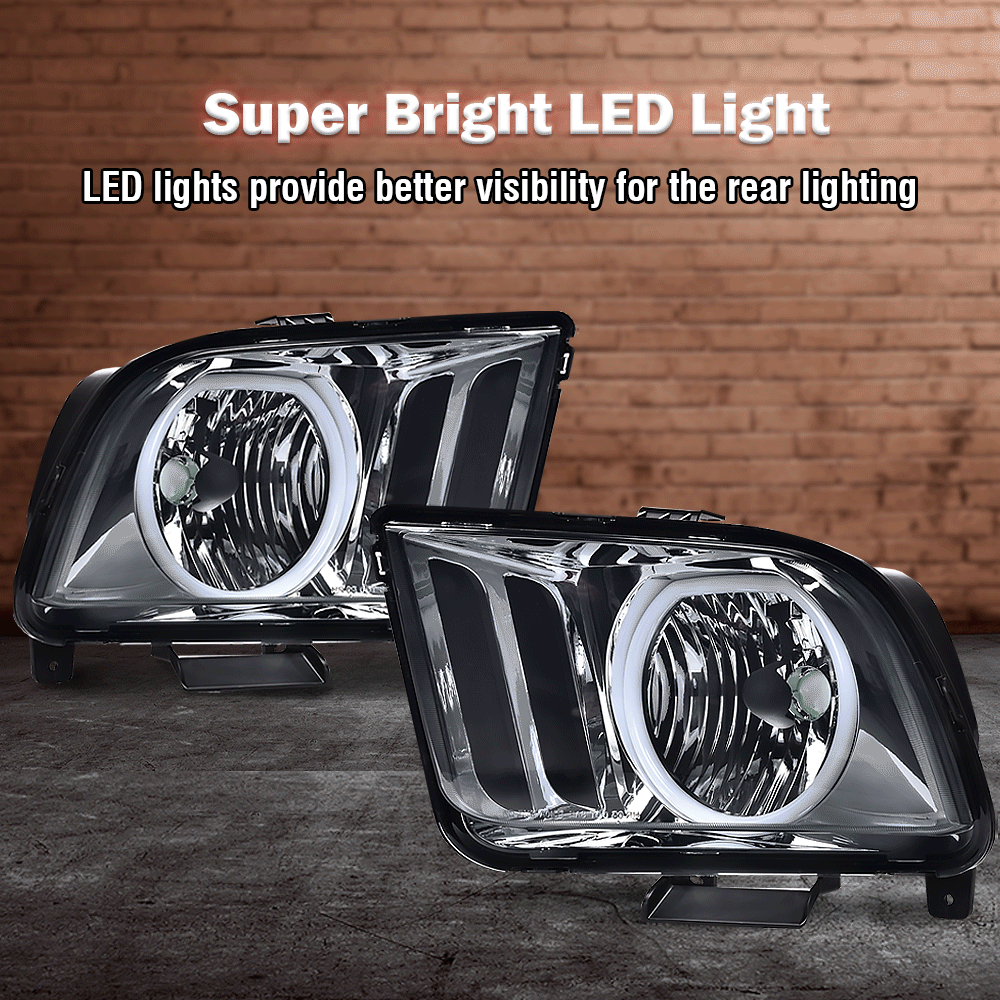 1 Pair Halogen Headlights Lamp Fit For 2005-2009 Ford Mustang