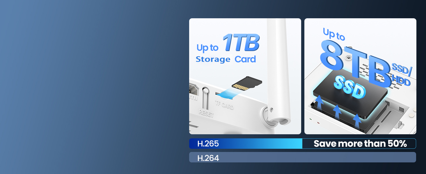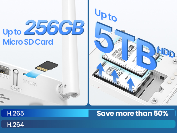 With total storage expandable up to 5TB, this complete NVR security system supports 24/7 non-stop recording of up to 8 cameras at the same time.