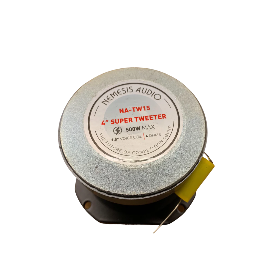 The NA-TW15 is a powerful 4" super tweeter that has a peak power handling of 500W and 250W RMS. Featuring a sensitivity of 107dB SPL and a frequency range of 2KHz to 20KHz, this 4-ohm tweeter delivers crisp, clear highs. Its durable polymer diaphragm and 1.5" voice coil ensure reliable performance. Ideal for enhancing your audio system.