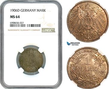 AK210, Germany, William II, 1 Mark 1906 D, Munich Mint, Silver, NGC MS64