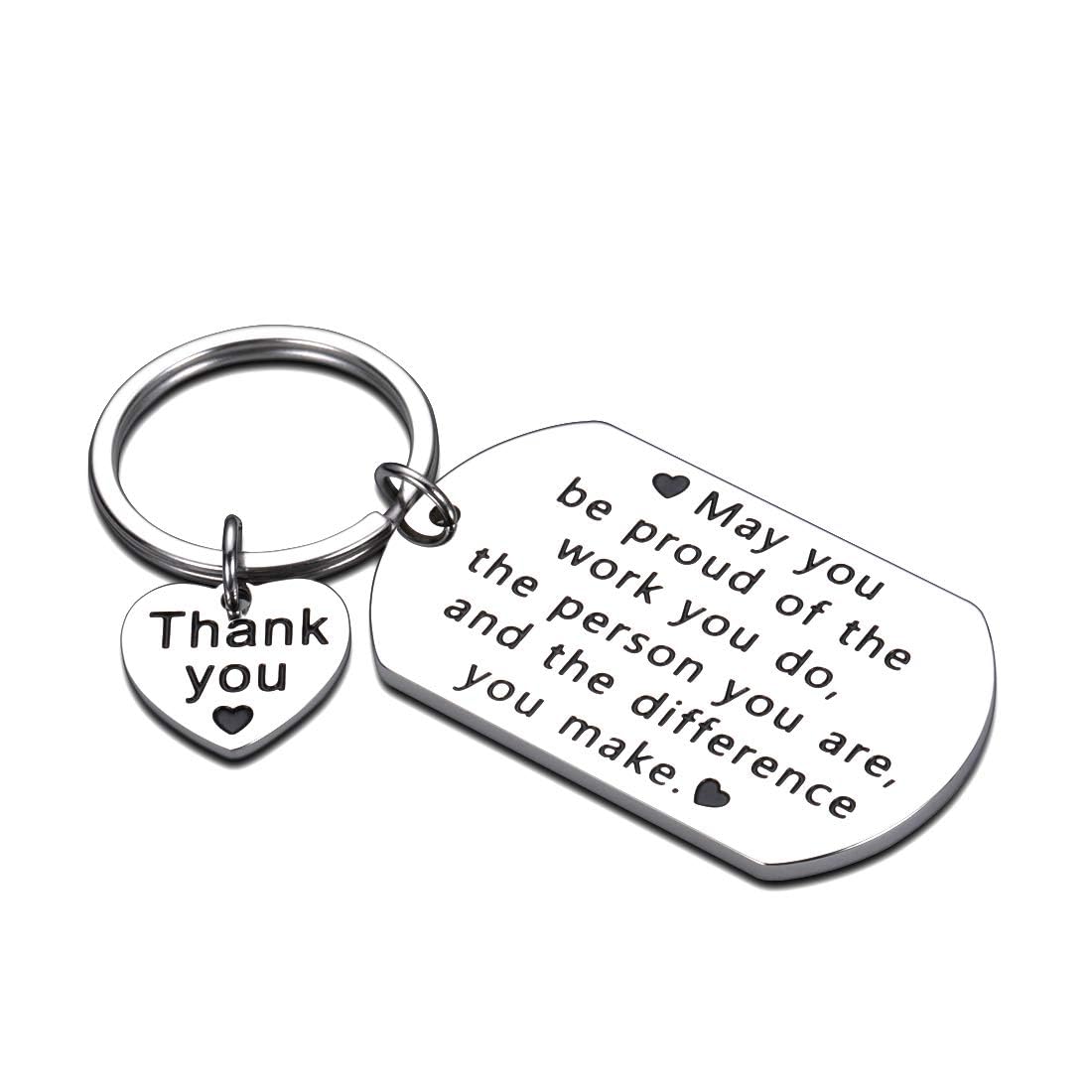 - ❥ Great Gift Idea for Women Men -- This keychain engraved with “ May you be proud of the work you do, the person you are, and the difference you make.” with the small “Thank you” pendant. Make a sentimental gift for your coworkers friends, colleagues, employee, boss, mentor, leader, PM, supervisor, manager, boss lady, team coworkers, groups of coworkers, departing co-workers, retiring co-worker, Hr, peers, former coworker, when they started a new job, got promoted, leaving away or any moments.
