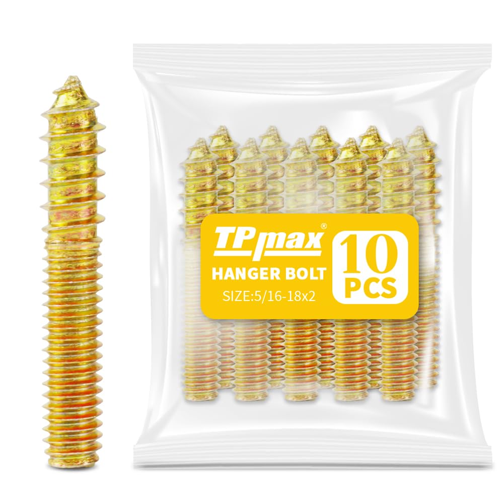 10 Pack 5/16-18 x 2 Inch Hanger Bolts Double Headed Bolts Self-Tapping Screw Hanger Bolts for Furniture (5/16-18" x 2")