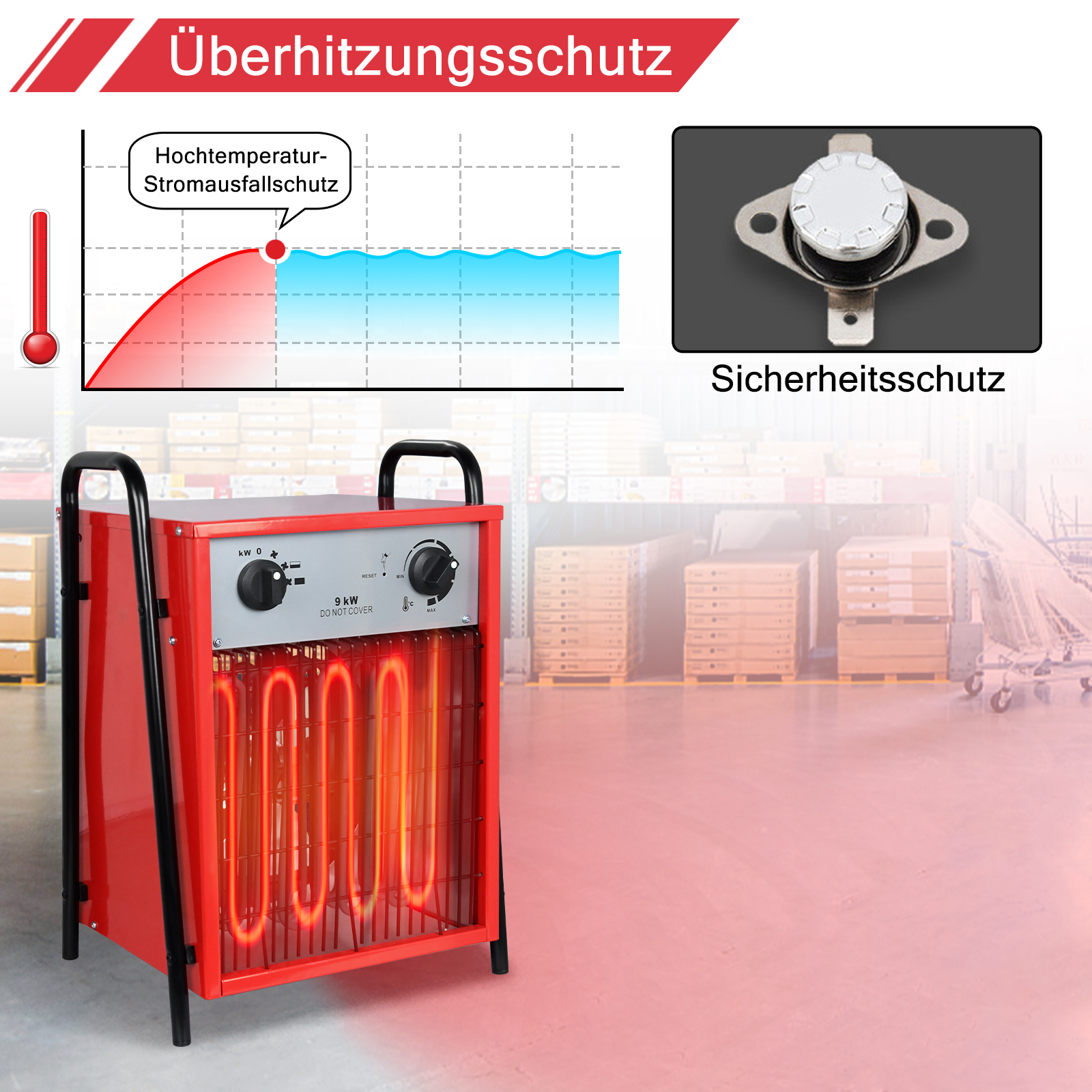 🔒【Sicherheitsmerkmale】 Die Heizung ist mit einer integrierten Überhitzungsschutzvorrichtung ausgestattet, die die automatische Abschaltung bei Übertemperatur gewährleistet. Diese Schutzfunktion bietet Ihnen und Ihrer Familie ein hohes Maß an Sicherheit und Zuverlässigkeit. Egal ob im Dauerbetrieb oder bei hoher Leistung – Sie können sich stets auf einen sicheren Betrieb verlassen.