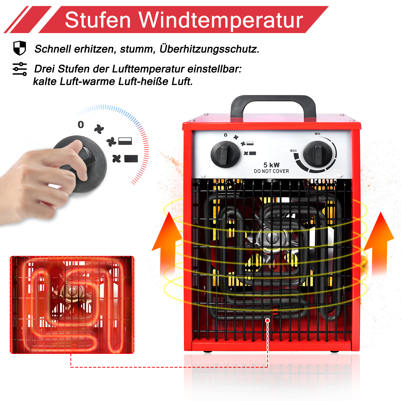 🔥【Flexibler Einsatz】Mit dem einstellbaren Temperaturregler können Sie die gewünschte Wärme präzise einstellen – von leichter Erwärmung bis hin zur maximalen Heizleistung. Die lüfterunterstützte Heizung sorgt für einen kraftvollen Luftstrom, der die Wärme gleichmäßig verteilt. Der hitzebeständige, kompakte Kunststoffgriff ermöglicht ein leichtes Umstellen der Heizung, ideal für den Einsatz in verschiedenen Räumen. Zudem arbeitet das Gerät ohne Sauerstoffverbrauch, ist rauchfrei, geruchsneutral und feuchtigkeitsfrei, wodurch die Luftqualität im Raum erhalten bleibt. Der geräuscharme Betrieb und die schnelle Wärmeübertragung machen diese Heizung zu einer ausgezeichneten Wahl für Wohn- und Arbeitsbereiche.