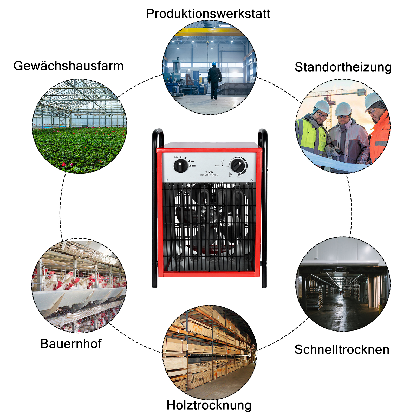 🏗【Vielseitige Anwendung】Diese Heizung findet breite Anwendung in unterschiedlichsten Bereichen. Sie ist perfekt geeignet für Werkstätten, in denen eine konstante Wärmeversorgung wichtig ist, sowie für Straßen- und Brückenbauprojekte, Industrieanlagen und Gewächshäuser. Auch beim Vorwärmen von Kraftfahrzeugen und bei Renovierungsarbeiten kann sie effektiv eingesetzt werden. Darüber hinaus ist sie nützlich für den Straßenbau und andere Außenanwendungen, bei denen eine robuste und zuverlässige Heizquelle erforderlich ist.