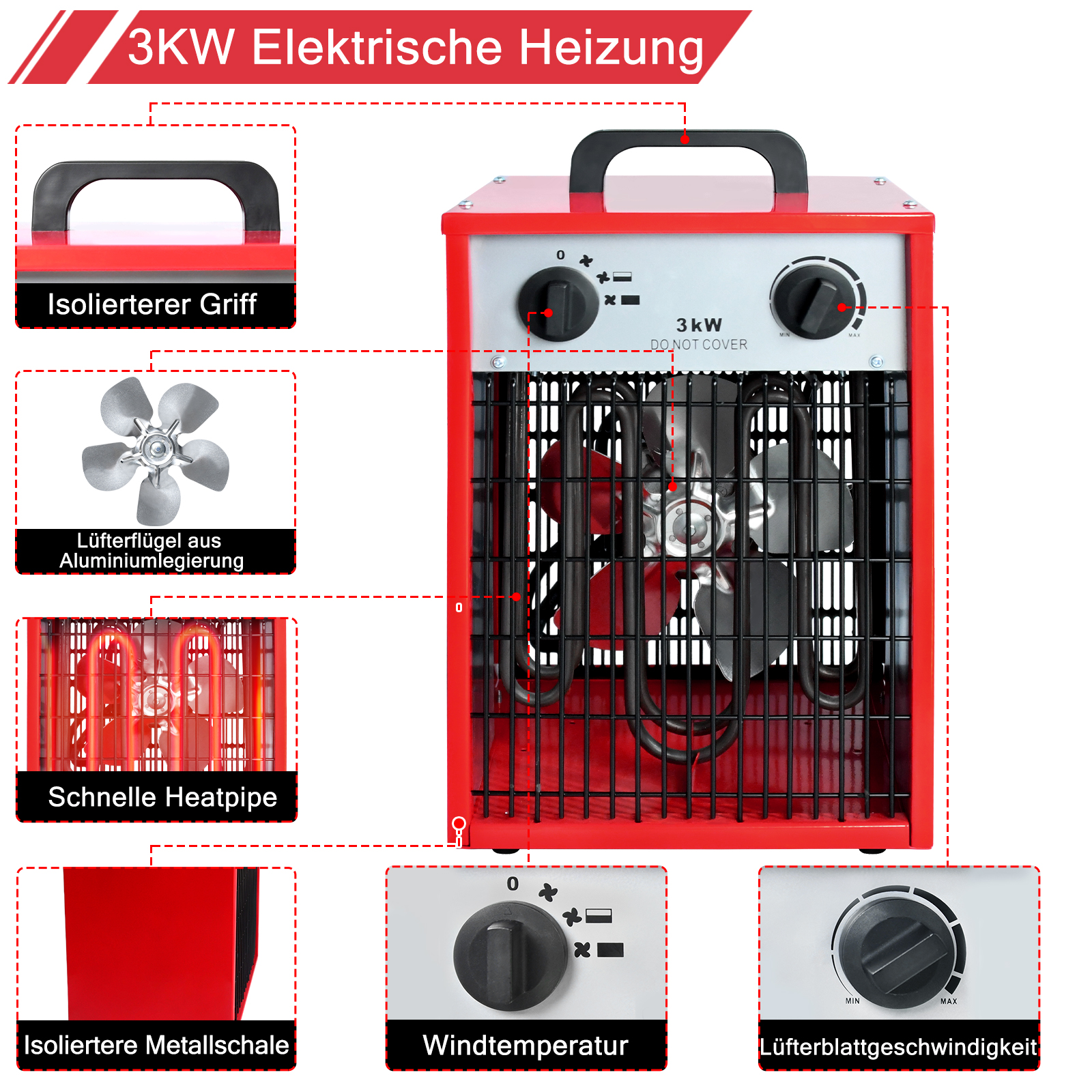 🔥【Robustes Material】Die Heizung besteht aus einem Vollmetallgehäuse, das speziell behandelt wurde, um eine effektive Isolierung zu gewährleisten. Dieses widerstandsfähige Gehäuse sorgt nicht nur für eine lange Lebensdauer, sondern auch für einen sicheren Betrieb, selbst bei intensiver Nutzung. Dank des kompakten, freistehenden Designs und der Mobilität kann das Gerät problemlos von einem Raum zum anderen transportiert werden.