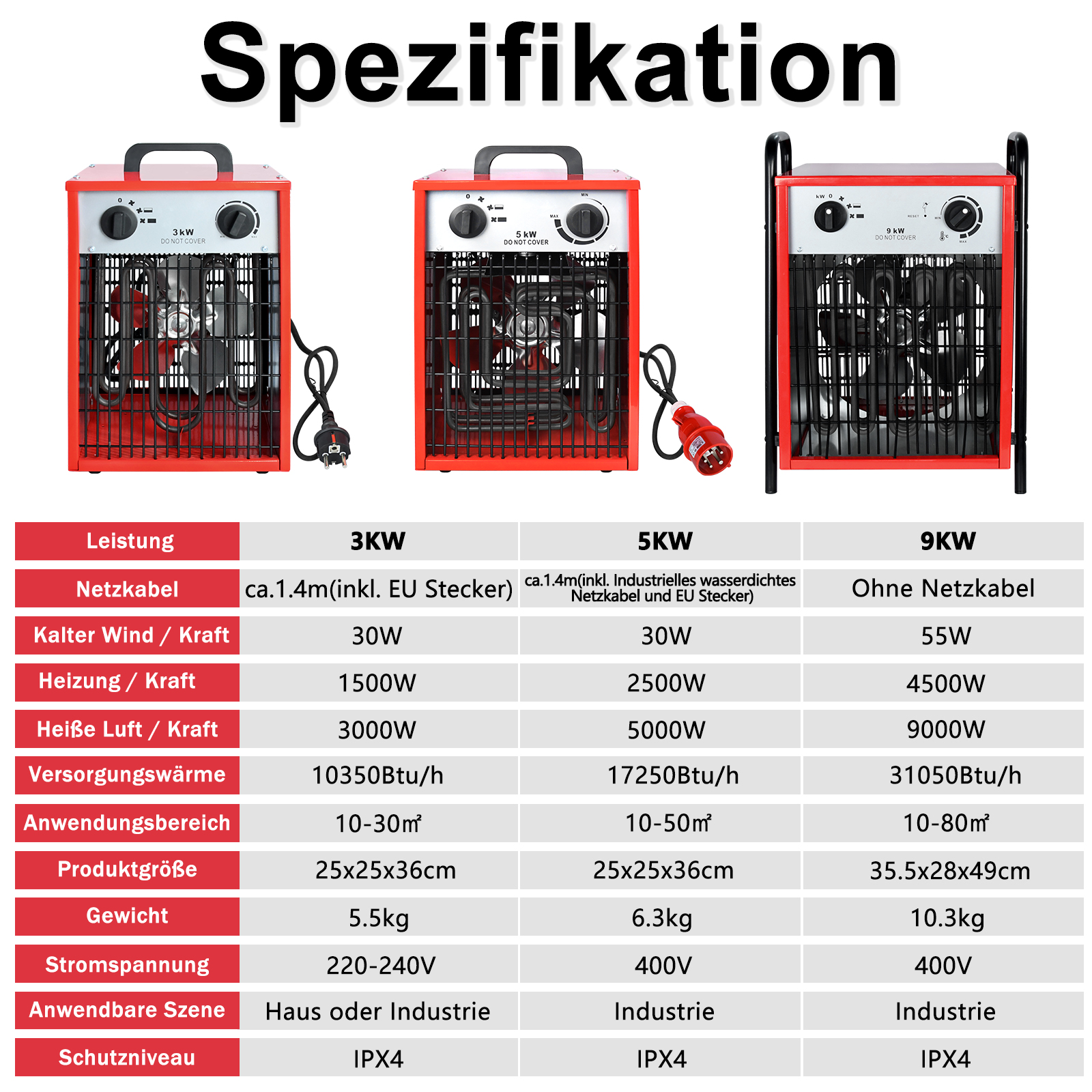 💧【IPX4-Schutzklasse】 Mit der wasserdichten Schutzart IPX4 ist diese Heizung für den Außeneinsatz geeignet. Egal, ob Sie auf der Terrasse sitzen oder die Garage heizen – sie bietet zuverlässige Wärme auch bei leichtem Spritzwasser. Das macht sie zu einer idealen Ergänzung oder einem Ersatz für herkömmliche Zentralheizungen, insbesondere in feuchten oder offenen Umgebungen.