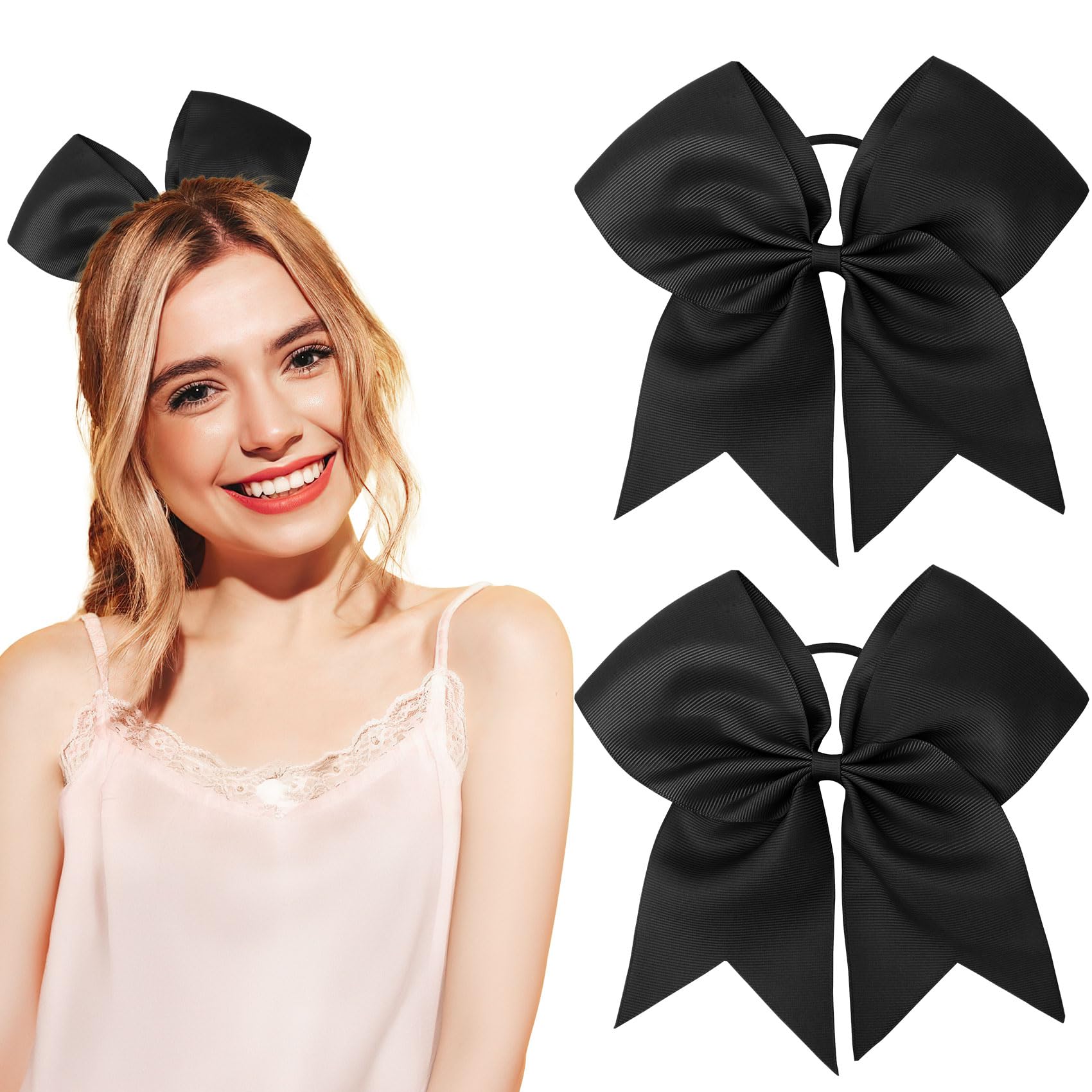 - Size: You will get 2pcs large hair bows, the cheerleader bow is 8" and the ribbon is 3" wide. The hair bows come with a ponytail elastic band, it can be easily tied on your hair, great for cheerleading practice and daily use.