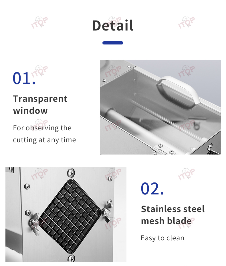 With stainless steel mesh blade and solid plastic cutter, easy to clean