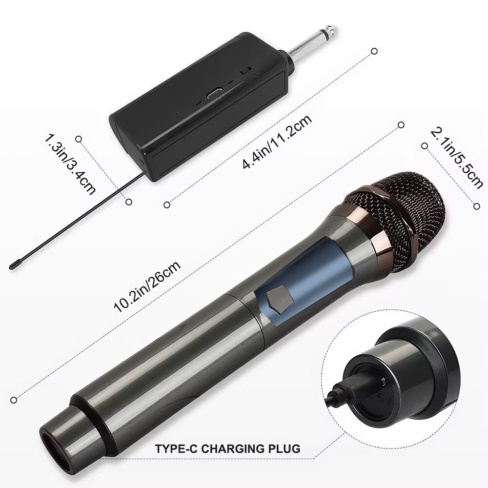 2x kabelloses Handmikrofon, schnurlos, dynamisches UHF-Mikrofonsystem, Karaoke-Empfänger