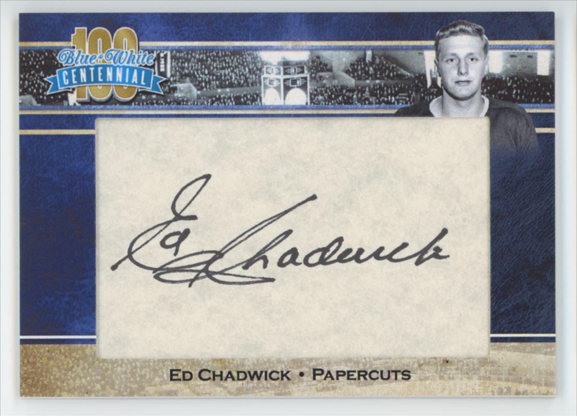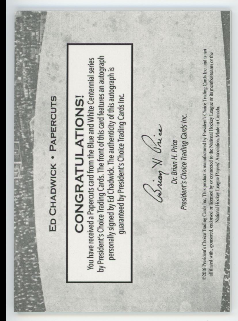 | 2016-17 President's Choice Blue and White Centennial Papercuts Ed Chadwick Auto |