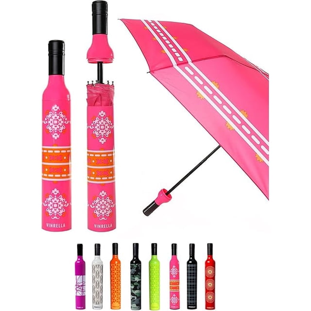 Finally, an umbrella you can store wet - keeping your purse or bag dry! These designer umbrellas and the matching no-drip bottle are built sturdy with a style for any personality. All the reasons that make Vinrella a fun, memorable gift for your friends - or simply yourself! The vision for Vinrella from the start was to create umbrellas and rain accessories that could become more functional and fashionable through the use of great design. We've given our customers a hard carrying case for their bottle umbrellas, so they and all their belongings stay dry. Also, our windproof umbrellas have a new, contemporary look. Inspired to be the perfect gift for the deserving wine lover. All Vinrella wine bottle umbrellas have a no-drip design to seal your wet umbrella in the bottle and protect your purse, backpack, or briefcase. Our fashionable, unique, stylish, and fun designs brighten up rainy days and provide shade on sunny days. These compact umbrellas are portable and perfect to take on the go. Just toss it in your bag before or after it rains. With Vinrella you'll never experience leaky, wet umbrellas again!