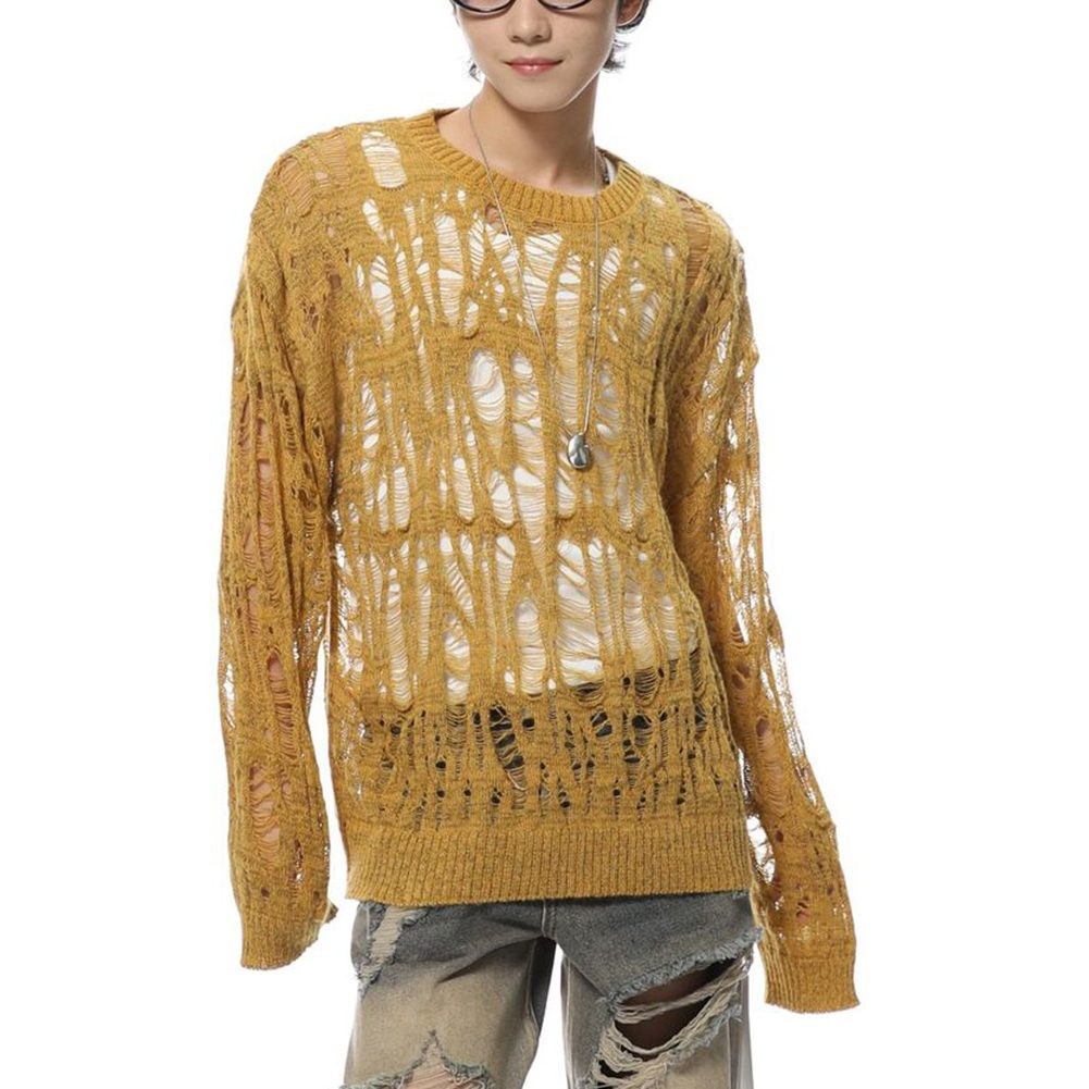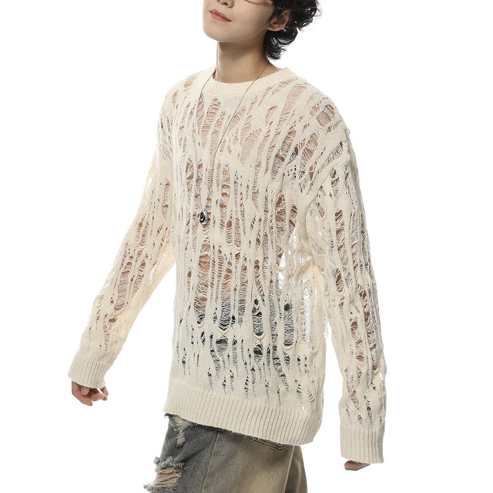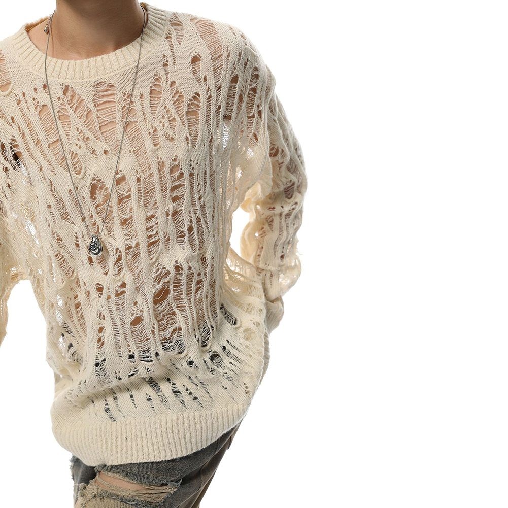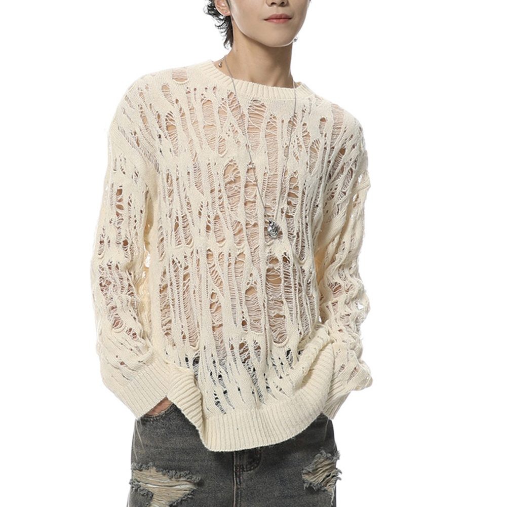 Retro Style Mens Long Sleeve Sweater Hollow Out Design for Casual Wear