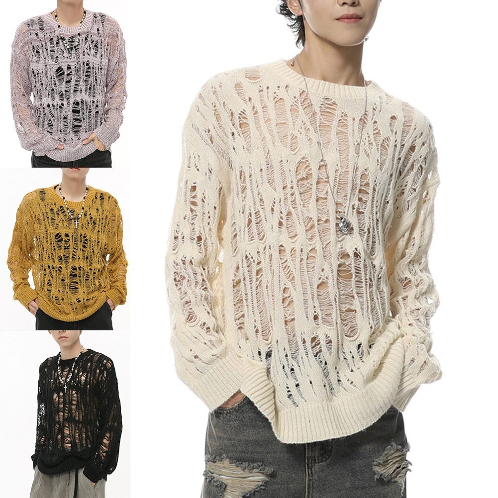 * Item Features:Men,Spring Autumn Hollow Out Hole Design O Neck Long Sleeve Sweater,Fashion Vintage Knitted Top