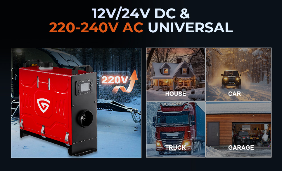 With a AC Converter: DC12V/24v, AC 110- 245V universal voltage automatic conversion, can be connected to two types of input power sources. You can plug the heater directly to AC Plug socket. No fuss to buy extra parts and do the DIY work to use it in your garage or basement. Make you feel toasty in RV,car, camper,trailer, home, shop, basement etc in winter. Get prepared when the weather takes a turn.