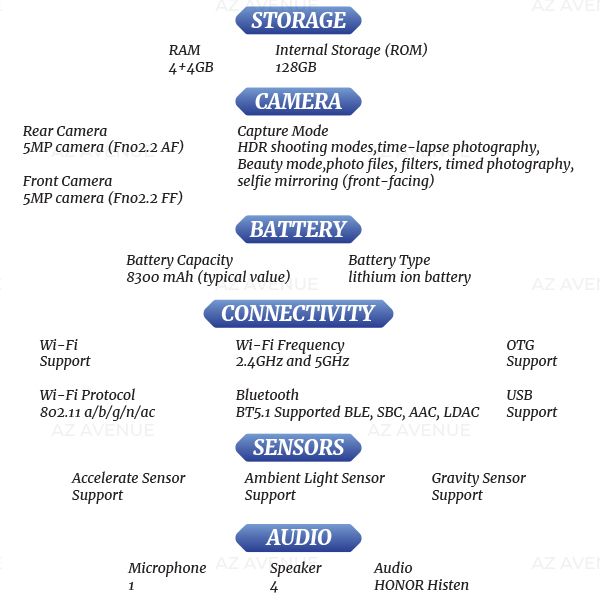 8300mAh battery that lasts up to 14 hours of video playback, 85 hours of music,
