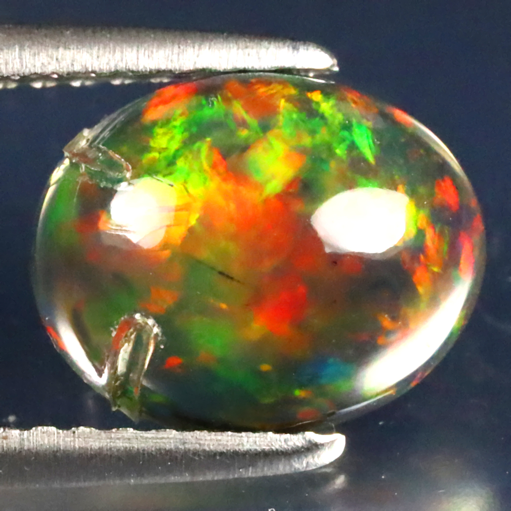 1.59 ct Superb Oval Cabochon (10 x 8 mm) Ethiopian 360 Degree Flashing Black Opal Natural Gemstone