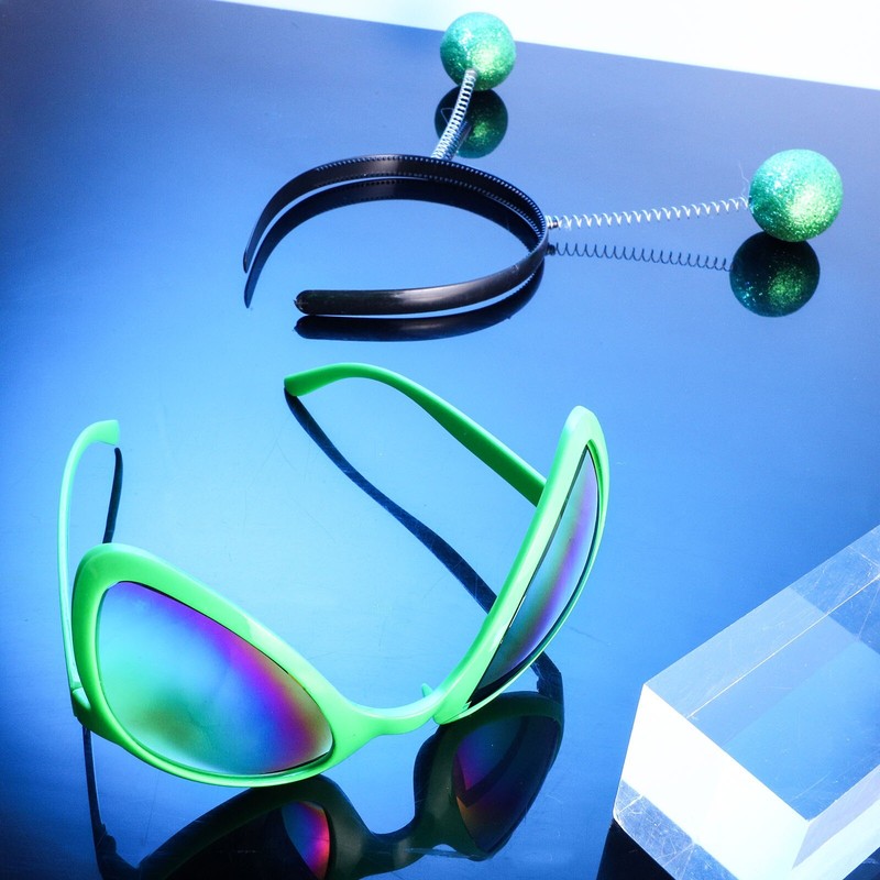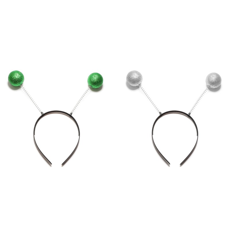 Flexible spring ends with foam ball covered with shiny powder, shaking with your movements, let you look like a real alien.