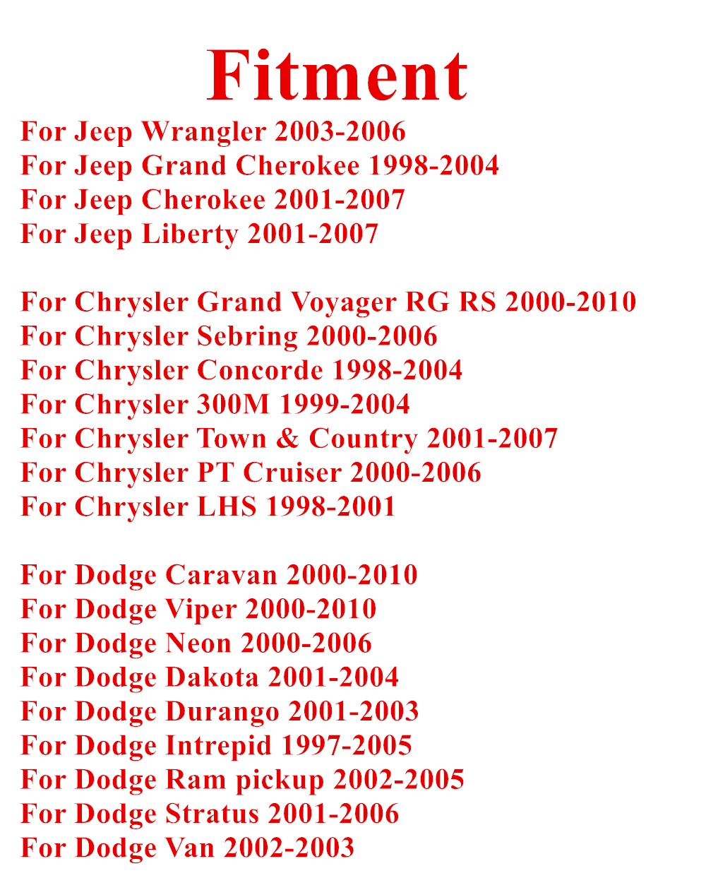 | Fitment | For Jeep For Jeep Wrangler 2003-2006 For Chrysler For Chrysler Grand Voyager RG RS 2000-2010 For Dodge For Dodge Caravan 2000-2010 |