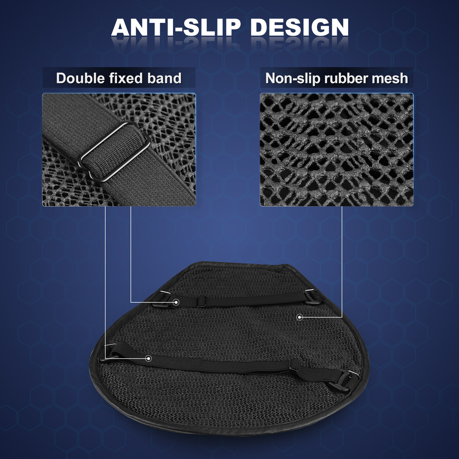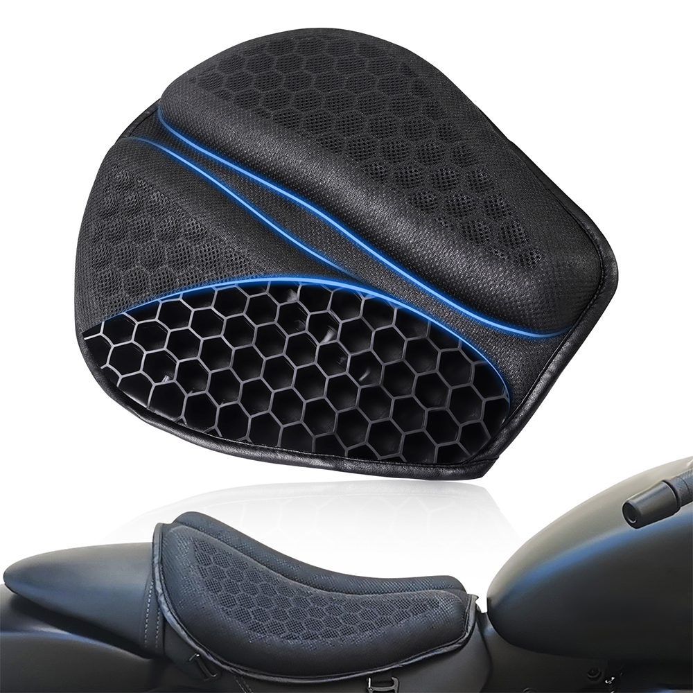 motorcycle seat pad is designed with a 3D honeycomb structure, which can circulate a lot of air and allow a cool experience throughout your entire ride