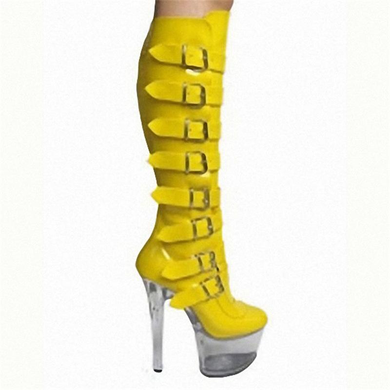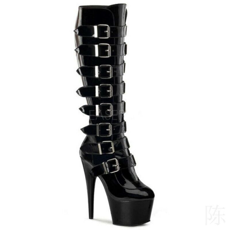 Women Punk High Heel Multi Buckle Knee Boots Platform Motorcycle Boot Party Shoe