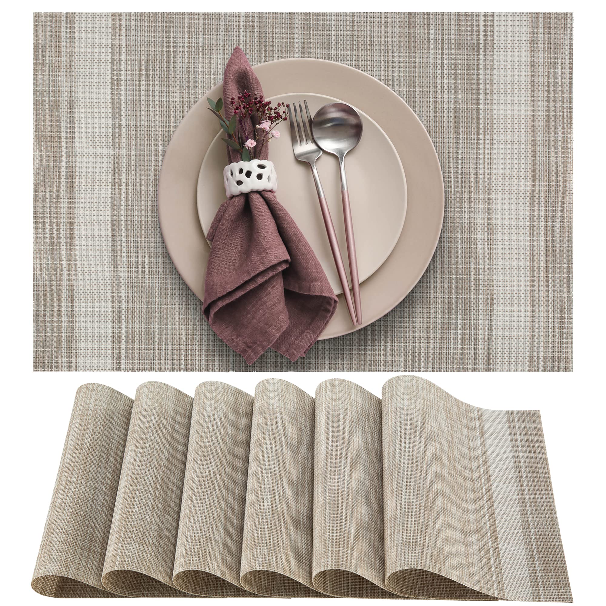 Enjoy dinnertime and worry less with our high quality, woven placemats! Durable PVC vinyl construction helps to protect surfaces from scratches, spills, stains, and warm dishes. Turn an ordinary supper into a lavish meal by using these placemats designed by , Especially for you!
