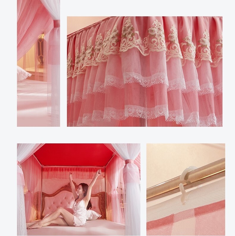 Double Layers Mosquito Net Bed Netting Embroidered Bed Curtain Drapes With Tubes
