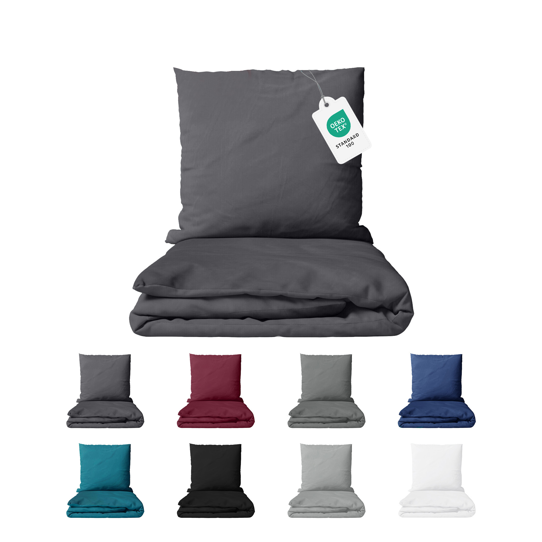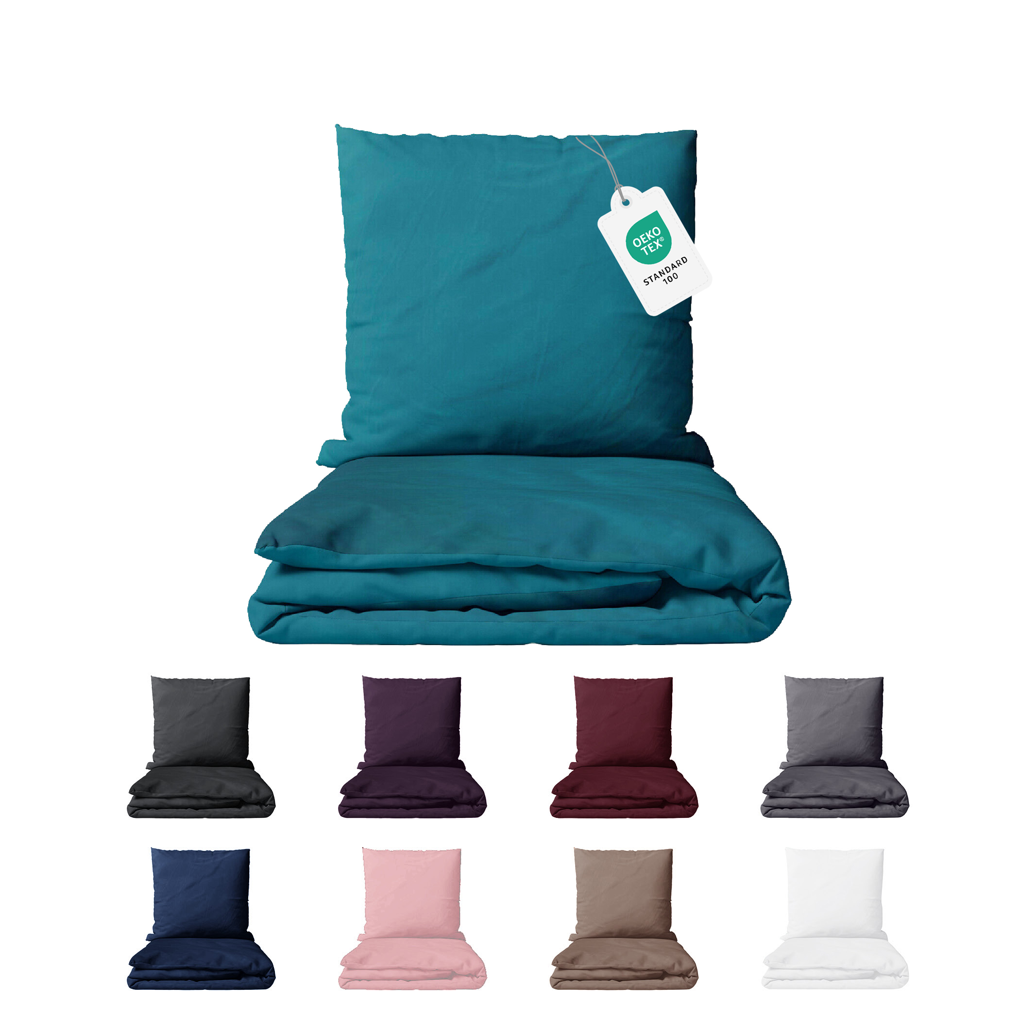 Renforce Bettwäsche Set 2tlg/4tlg Baumwolle 135x200 155x220 – 10 Uni Farben